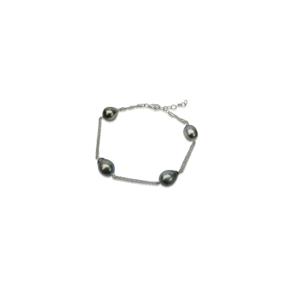 Bracelet by Yvel Jewellery featuring grey Tahitian pearls with a multi chain link inbetween, Adjustable length closing. 18ct White Gold. Matching Necklace available.