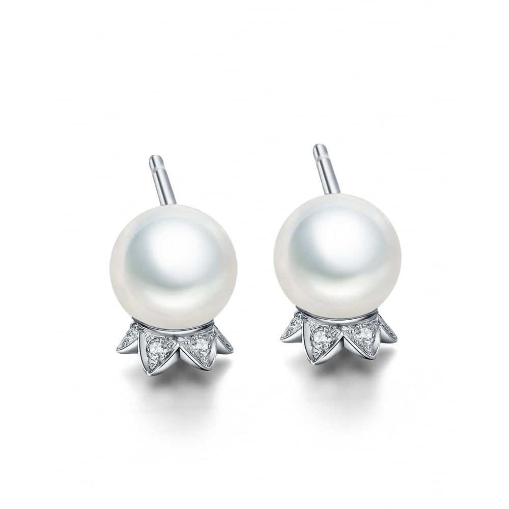 Lily of the Valley Stud Earrings with Pearls 9ct White Gold