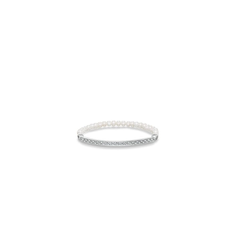 THOMAS SABO Bracelet from the Sterling Silver Collection. Give somebody close to you a symbol of love the THOMAS SABO Love Bridge bracelet with white cultivated freshwater pearls embodies the unique bond between two hearts. The filigree bridge crafted from 925 Sterling silver is embellished with dazzling pavé zirconia in a zigzag look and can be flawlessly combined with the existing THOMAS SABO designs.