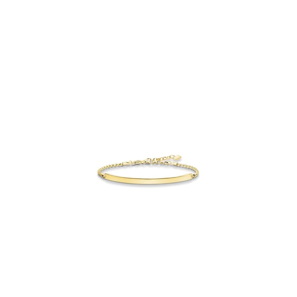 THOMAS SABO Bracelet from the Sterling Silver Collection. Give somebody close to you a personal symbol of love – the THOMAS SABO Love Bridge bracelet symbolises the unique bond between two hearts. With a free-of-charge engraving, this filigree bridge crafted with 18k yellow gold plating offers you the possibility to express your very own feelings and to capture your personal moments of happiness for all eternity.