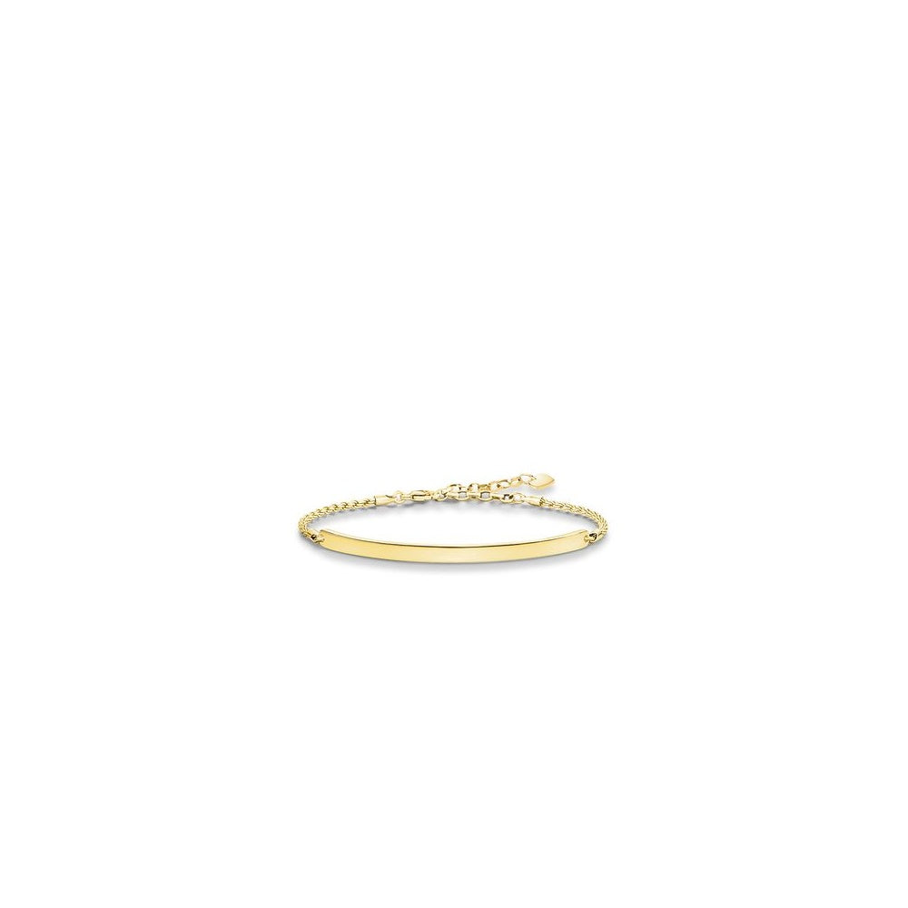 THOMAS SABO Bracelet from the Sterling Silver Collection. Give somebody close to you a personal symbol of love the THOMAS SABO Love Bridge bracelet symbolises the unique bond between two hearts. With a free-of-charge engraving, this filigree bridge crafted with 18k yellow gold plating offers you the possibility to express your very own feelings and to capture your personal moments of happiness for all eternity.