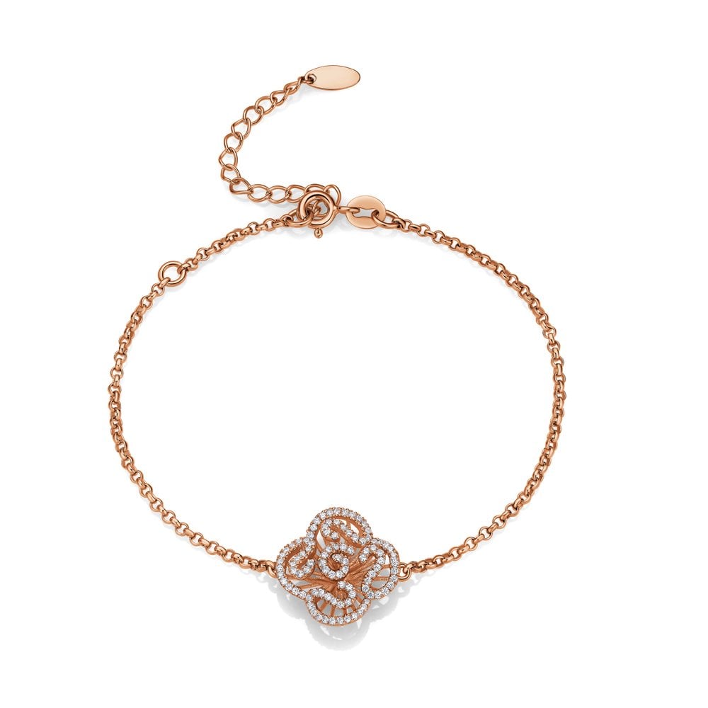 Cascade mini bracelet in Sterling Silver with anti-tarnish treated 18ct rose gold plating. Finished to a high polish with pavé set cubic zirconia. With its dramatic, sweeping folds and architectural framework, Cascade is a striking combination of line and curve. Beautifully delicate yet unashamedly bold, the collection s undulating forms are inspired by the movement and strength of flowing water; captured in a dazzling ribbon of pavé set cubic zirconia.