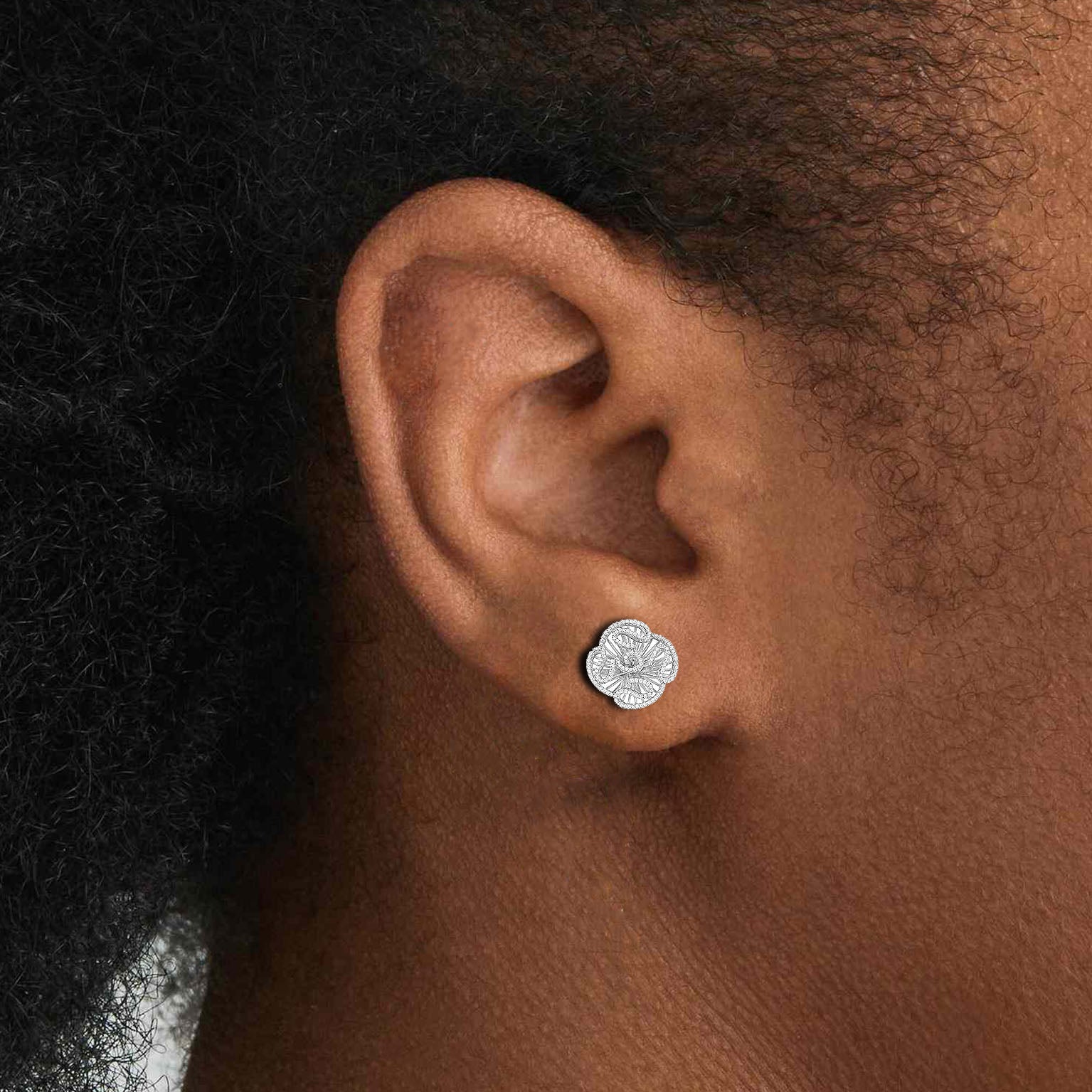 Cascade mini stud earrings in Sterling Silver with anti-tarnish treated rhodium plating. Finished to a high polish with pavé set cubic zirconia. With its dramatic, sweeping folds and architectural framework, Cascade is a striking combination of line and curve. Beautifully delicate yet unashamedly bold, the collection s undulating forms are inspired by the movement and strength of flowing water; captured in a dazzling ribbon of pavé set cubic zirconia.
