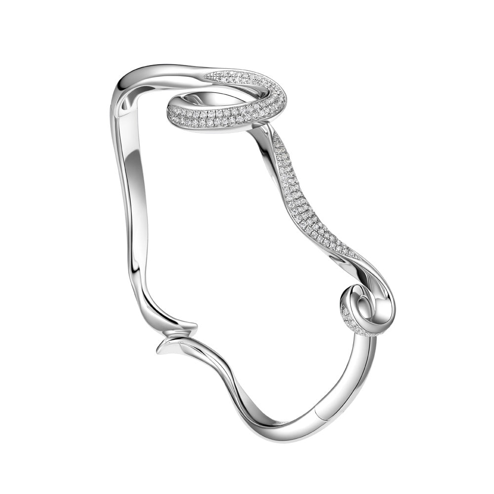Serenity is a collection in sterling silver, inspired by the flow and curves of the smoke of incense. Promoting a calm and peaceful environment, incense has been used for centuries for a variety of purposes; and Fei has translated this into stunning curves and waves of silver that exudes the tranquillity and femininity of the woman wearing them.