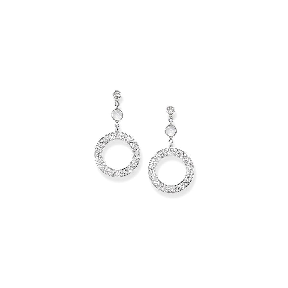 THOMAS SABO Ear studs from the Sterling Silver Collection. These zigzag earrings with milky quartz play with the visual contrariness of mathematical precision and emotional design, making a striking impact with dazzling pavé zirconia in black-and-white zigzag look.
