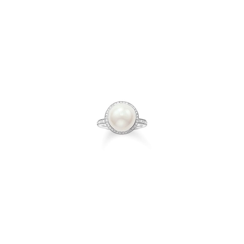 THOMAS SABO Ring from the Sterling Silver Collection. This elegant ring makes a real impact with a shimmering cultivated freshwater pearl, which is enveloped by a flower-shaped setting with white zirconia.