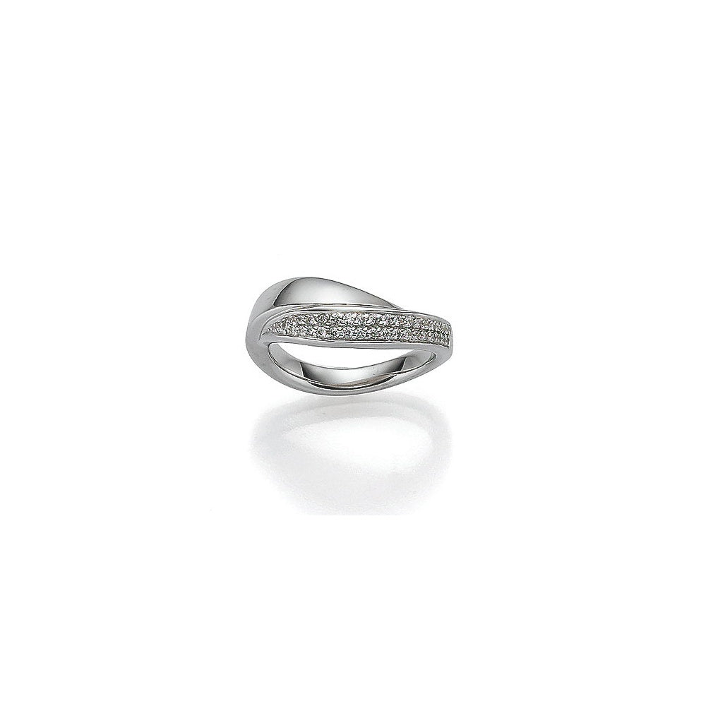 A twisted, innovative ring which represents the classic form of the question. Perfectly polished sterling silver, in harmony with one occupied by zirconia front, make the ring to an absolute eye-catcher and a gem with scarcity value.