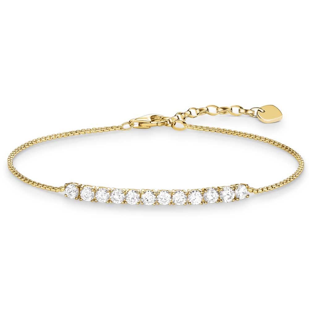 Reinterpretation of a classic: the artfully-cut white zirconia stones dazzlingly line up in the centre of this filigree tennis bracelet with yellow gold plating. Sterling Silver & Yellow Gold Plated Tennis Bracelet. Adjustable Length.
